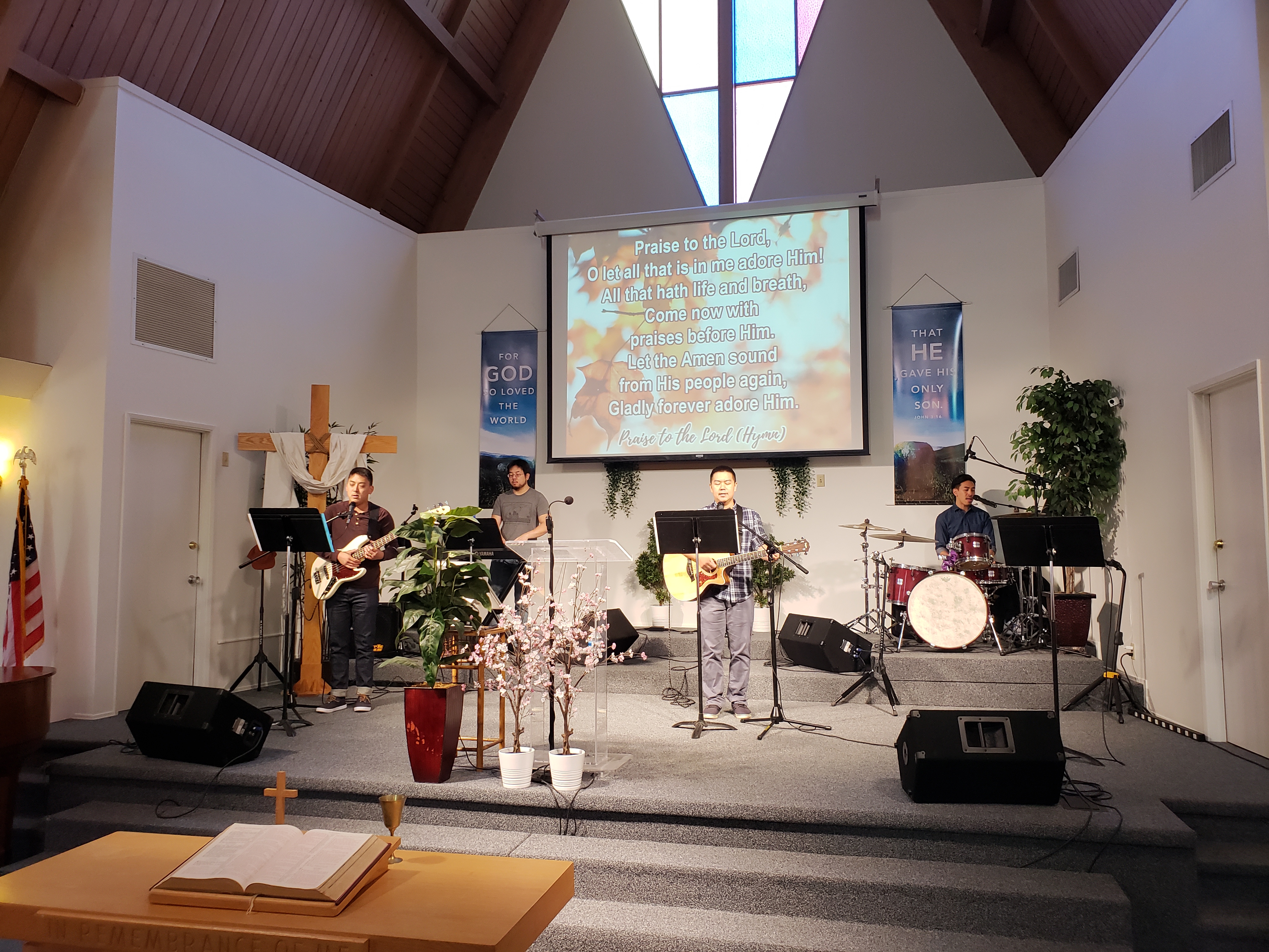 For families with children, all children are welcome to sit together with their family during the services. However, we also recognize that this dynamic won’t work for everyone. For families with infants and toddlers, there are nursery facilities available for parents to watch the service while caring for their children. For pre-school and elementary age children, a separate Sunday school class is also available both during the 9:30 a.m. and 11:00 a.m. services. Middle school and high school students are encouraged to participate in the English-language service at 9:30 a.m., with youth group afterwards during the 11:00 a.m. service.